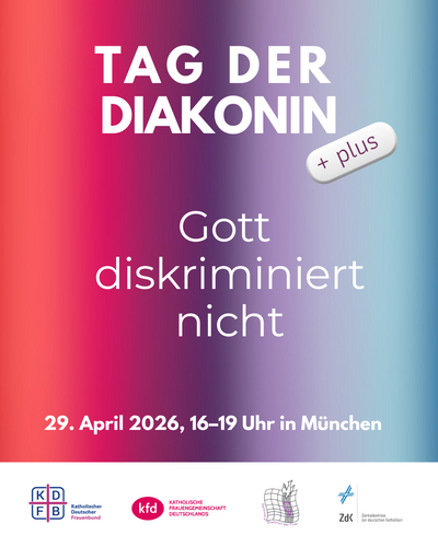 KDFB, kfd, Netzwerk Diakonat der Frau und ZdK laden diesmal unter dem Motto „Gott diskriminiert nicht“ – Tag der Diakonin +plus nach München ein.
