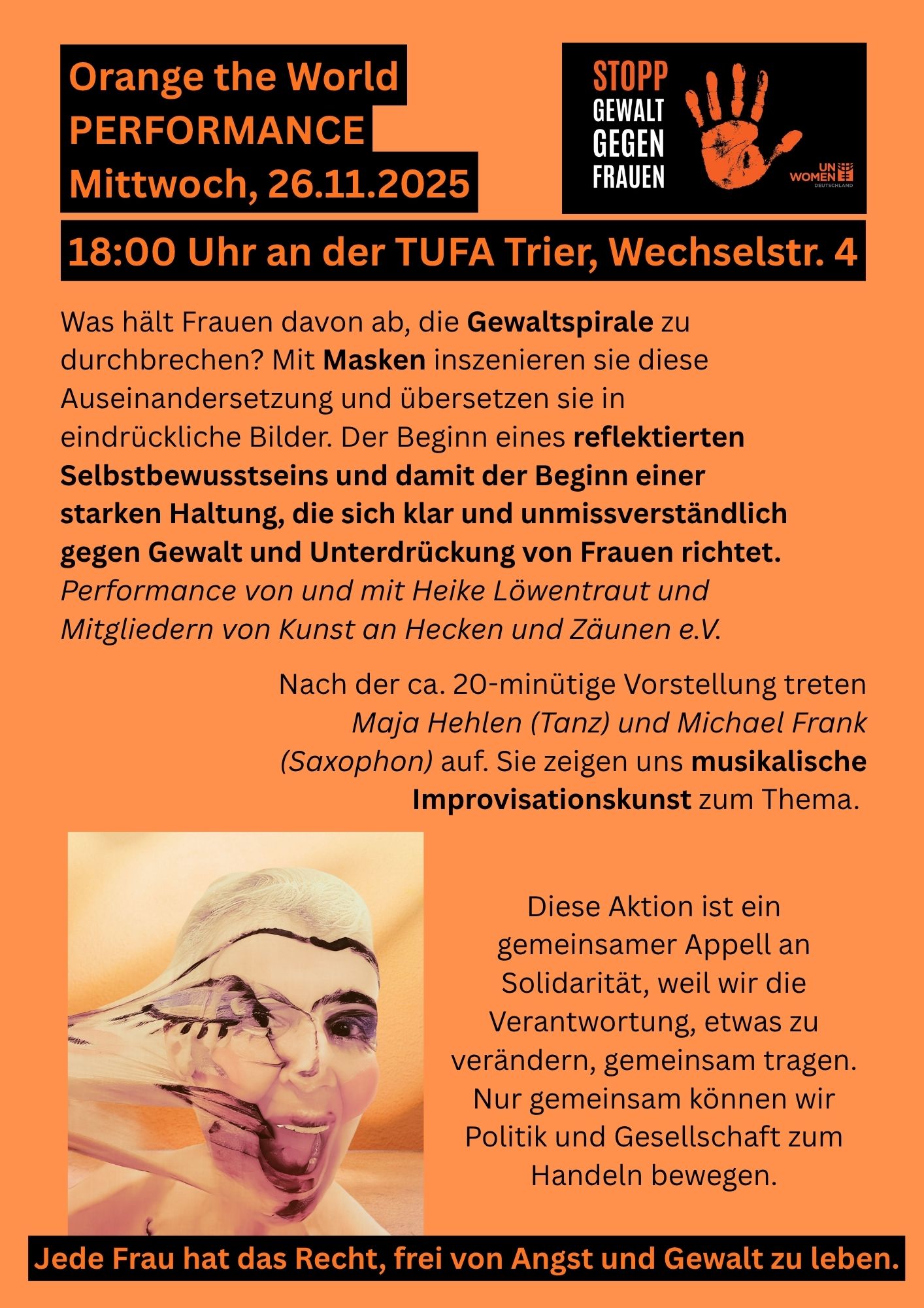 - 26.11.: Orange the World Performance, 18.00 Uhr in der Tufa, Trier