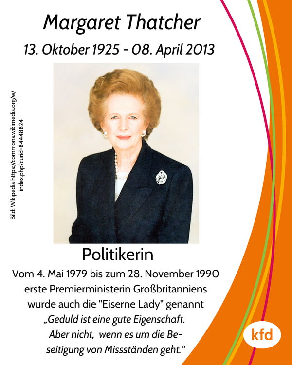 Vom 4. Mai 1979 bis zum 28. November 1990 erste Premierministerin Großbritanniens