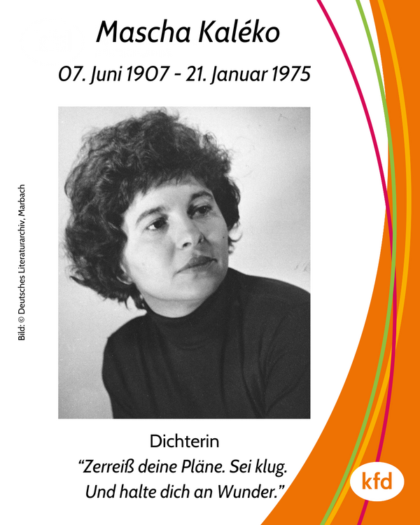 Mascha Kaléko07. Juni 1907 - 21. Januar 1975Dichterin“Zerreiß deine Pläne. Sei klug.Und halte dich an Wunder.”