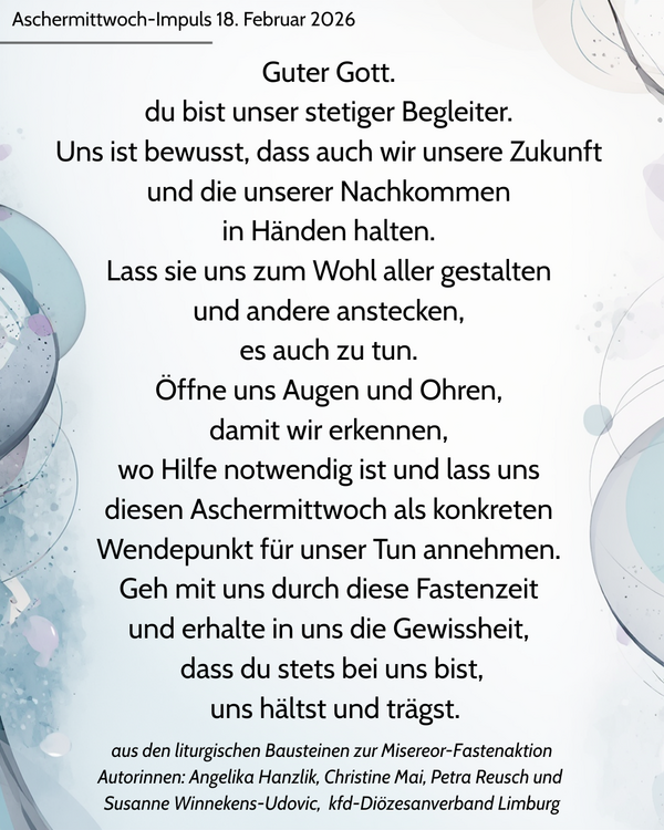 wo Hilfe notwendig ist und lass uns diesen Aschermittwoch als konkreten Wendepunkt für unser Tun annehmen.