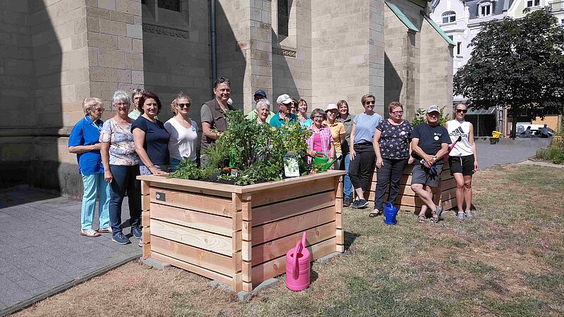 Etwas besonderes war der Freitag im „Rosenkränzchen“. Mit vereinter Kraft, der Gärtner*innen des Rosenkränzchens und kfd-Frauen, wurden zwei Hochbeete vor dem Pfarrheim in Bad Neuenahr, neben der Waschbar und Rosenkranzkirche, aufgebaut und gefüllt. Das Material für die Hochbeete wurde vom kfd-Diözesanverband Trier und der kfd-Schröck aus Marburg gespendet. Die Pflege übernehmen die Gärtner*innen des Rosenkränzchens.