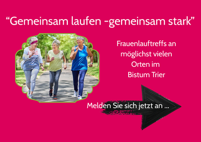 Angeleitet durch eine Lauftrainerin lernen Sie, wie Sie „richtig“ laufen, ihr Tempo entsprechend Ihrer persönlichen Fitness richtig wählen und langsam steigern. Eingeladen sind kfd-Mitglieder und interessierte Frauen. Melden Sie sich gerne bei uns, wenn Sie Interesse haben.